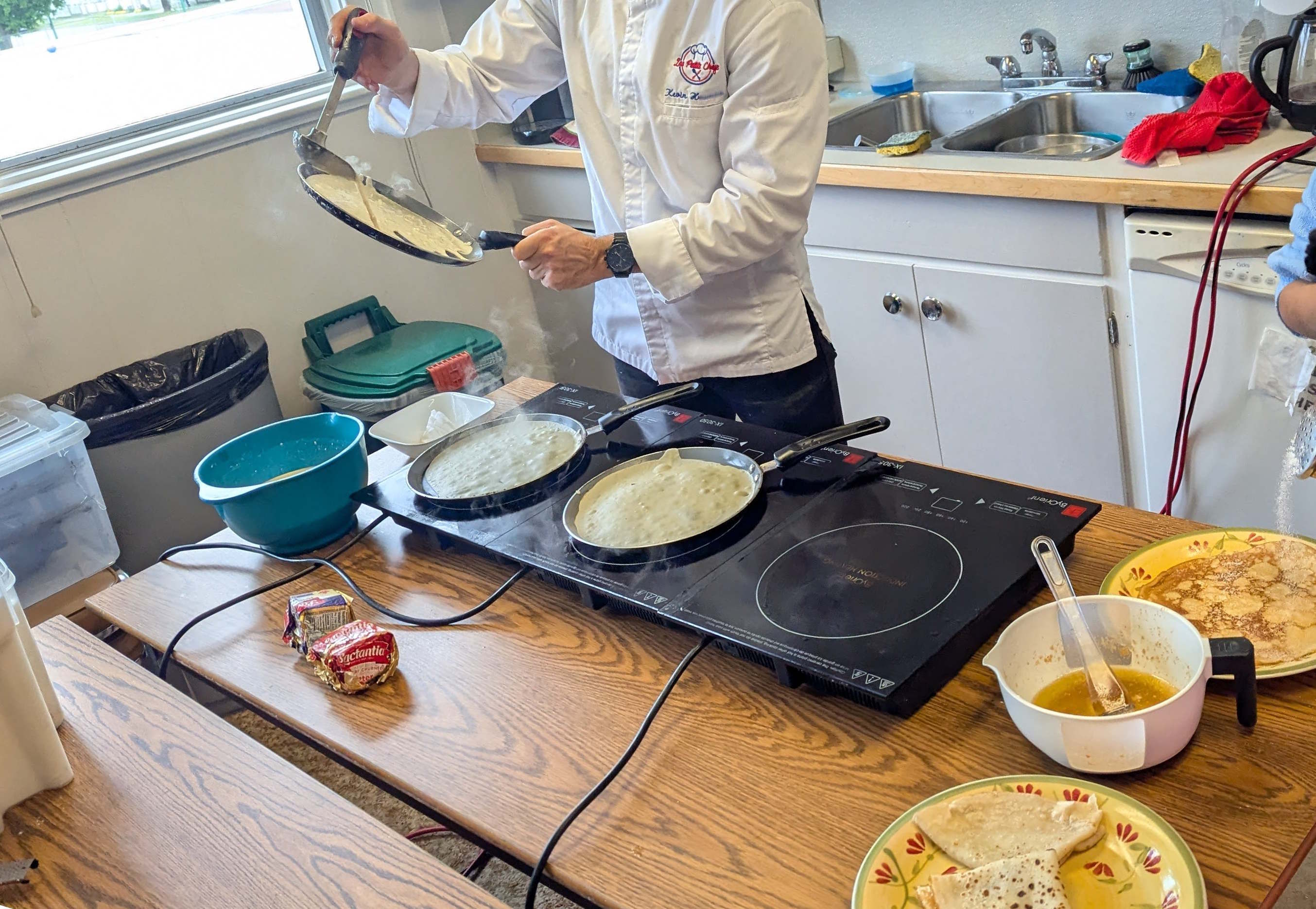 A chef named Kevin came to my son’s class to teach them to make traditional French crepes. This recipe is my best recollection of the recipe.